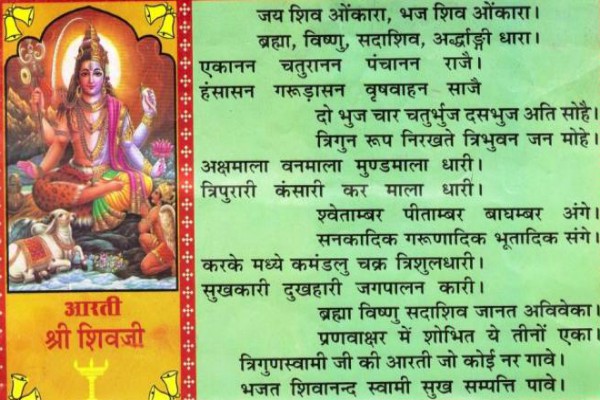 जय शिव ओंकारा ऊं जय शिव ओंकारा। ब्रह्मा विष्णु सदा शिव अद्र्धांगी धारा॥ ऊं जय शिव...॥