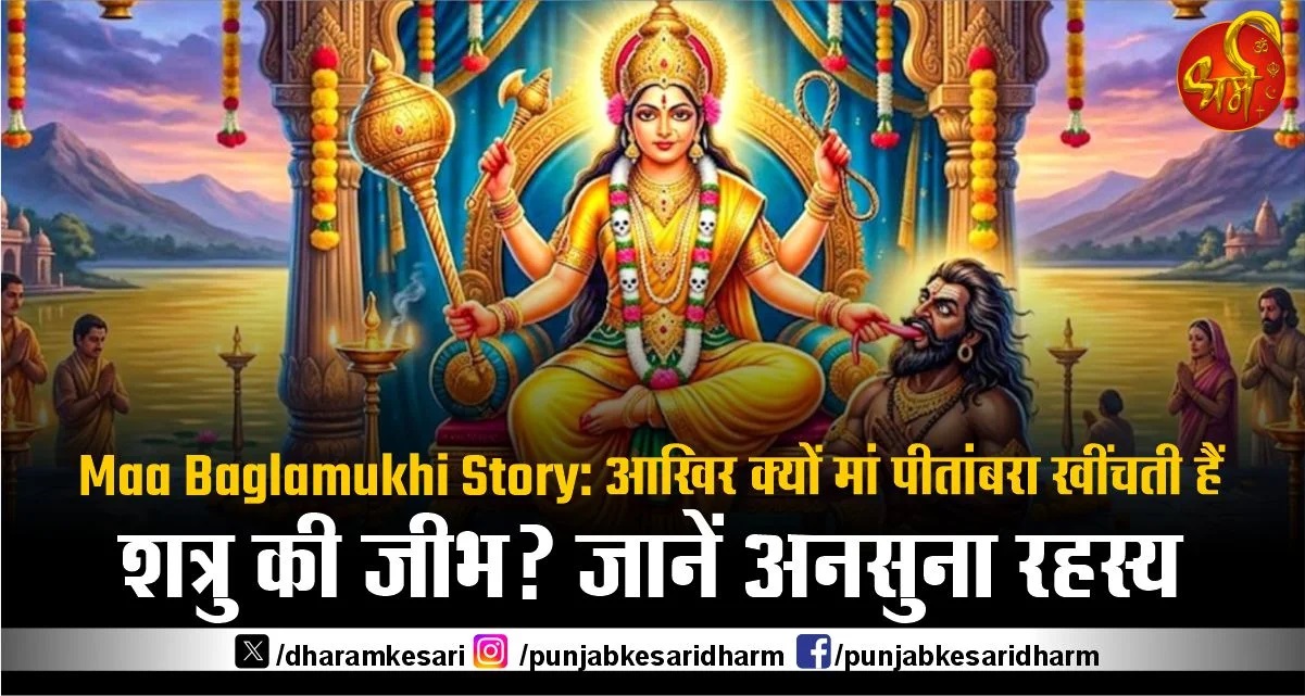 Pitambara Devi Story: सनातन धर्म में दस महाविद्याओं का विशेष महत्व है, जिनमें आठवीं महाविद्या मां बगलामुखी अपनी उग्र और अद्भुत मुद्रा के लिए जानी जाती हैं। 24 अप्रैल 2026, शुक्रवार को देशभर में मां बगलामुखी की जयंती बड़ी श्रद्धा के साथ मनाई जाएगी। अक्सर तस्वीरों में मां को एक हाथ में गदा लिए और दूसरे हाथ से शत्रु की जीभ खींचते हुए देखा जाता है। लेकिन क्या आपने कभी सोचा है कि ब्रह्मांड की रचयिता एक मां को आखिर शत्रु की जीभ खींचने की आवश्यकता क्यों पड़ी?