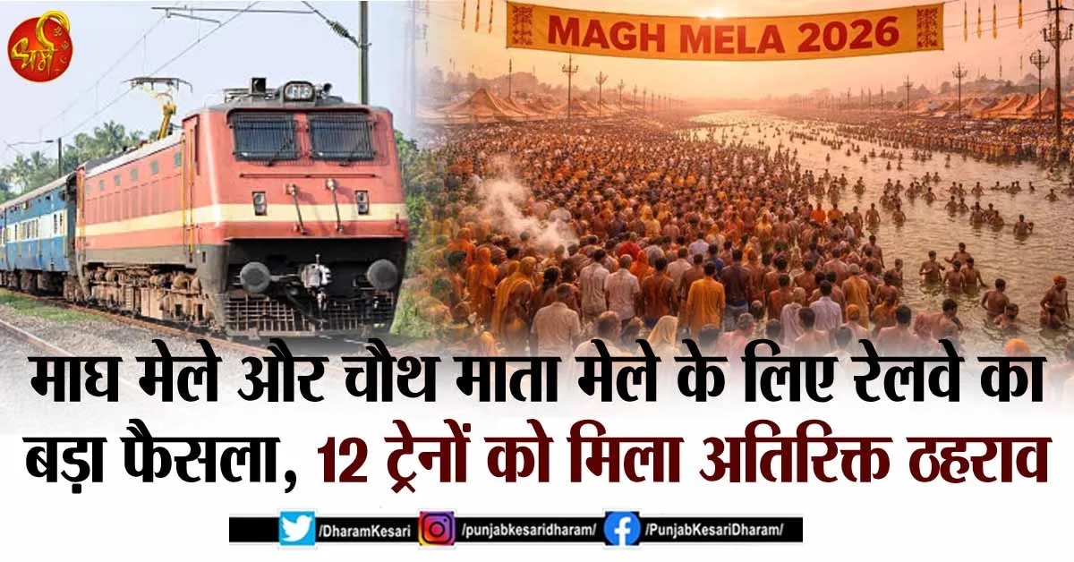 Magh Mela 2026 Railway Update : श्रद्धालुओं की सुविधा और सफर को आसान बनाने की दिशा में भारतीय रेलवे ने एक सराहनीय कदम उठाया है। उत्तर भारत के दो बड़े धार्मिक आयोजनों प्रयागराज का माघ मेला और चौथ का बरवाड़ा में आयोजित होने वाला चौथ माता मेला के मद्देनजर रेलवे ने 12 प्रमुख ट्रेनों के अतिरिक्त स्टॉपेज की घोषणा की है। इस फैसले से लाखों रेल यात्रियों को सीधे तौर पर राहत मिलेगी।