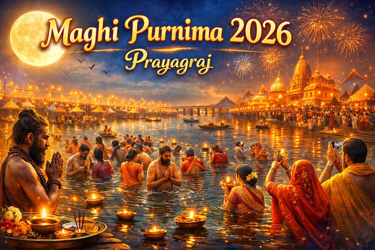 Maghi Purnima 2026 Prayagraj: प्रयागराज के पावन संगम तट पर आज माघी पूर्णिमा के अवसर पर आस्था का सैलाब उमड़ पड़ा है। कड़कड़ाती ठंड के बावजूद, ब्रह्म मुहूर्त से ही लाखों श्रद्धालुओं ने त्रिवेणी संगम में पुण्य की डुबकी लगाना शुरू कर दिया है। इस बार की माघी पूर्णिमा कई मायनों में बेहद खास है।
