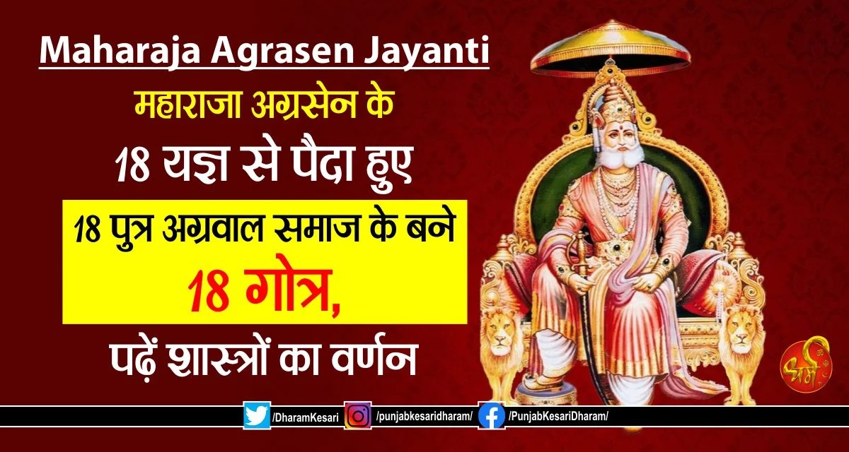 Maharaja Agrasen Jayanti: महाराजा अग्रसेन के 18 यज्ञ से पैदा हुए 18 पुत्र अग्रवाल समाज के बने 18 गोत्र, पढ़ें शास्त्रों का वर्णन