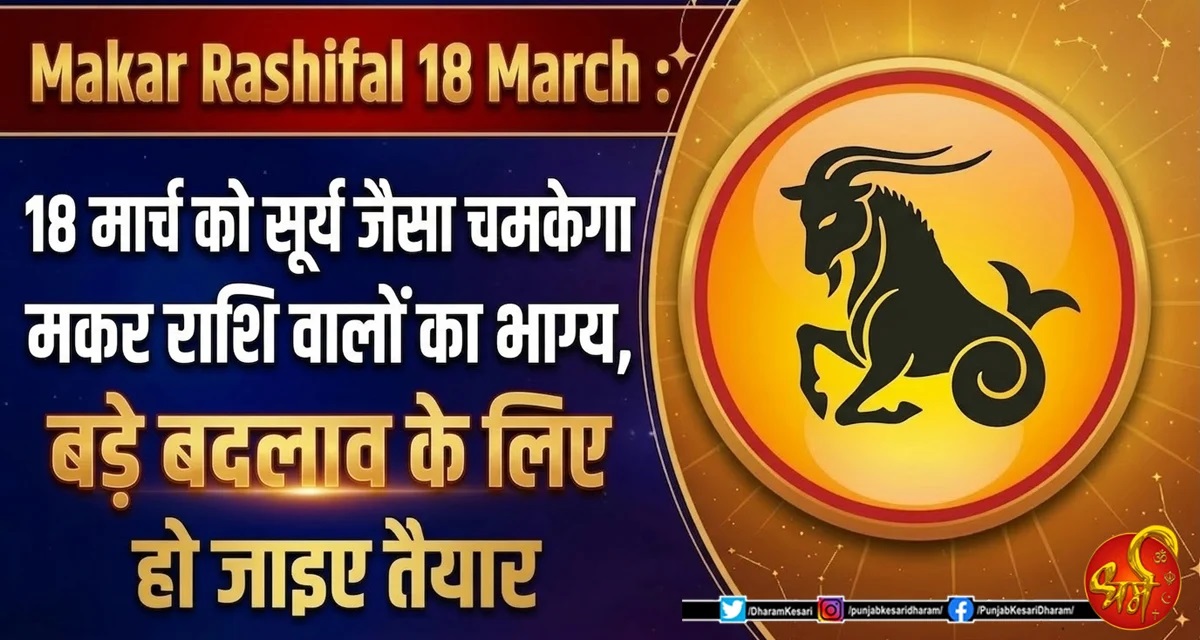 Makar Rashifal 18 March : 18 मार्च, 2026 का दिन मकर राशि के जातकों के लिए एक ऐतिहासिक और परिवर्तनकारी दिन साबित होने वाला है। शनि देव के स्वामित्व वाली यह राशि अपने अनुशासन, धैर्य और कड़ी मेहनत के लिए जानी जाती है। ग्रहों की चाल संकेत दे रही है कि आज आपका भाग्य 'सूर्य की भांति' चमकने वाला है। लंबे समय से अंधेरे में भटक रहे आपके प्रयास आज रोशनी की ओर बढ़ेंगे। आज का दिन केवल छोटी-मोटी खुशियों का नहीं, बल्कि बड़े बदलावों का है। आइए विस्तार से जानते हैं कि आपके जीवन के हर क्षेत्र में क्या हलचल होने वाली है।