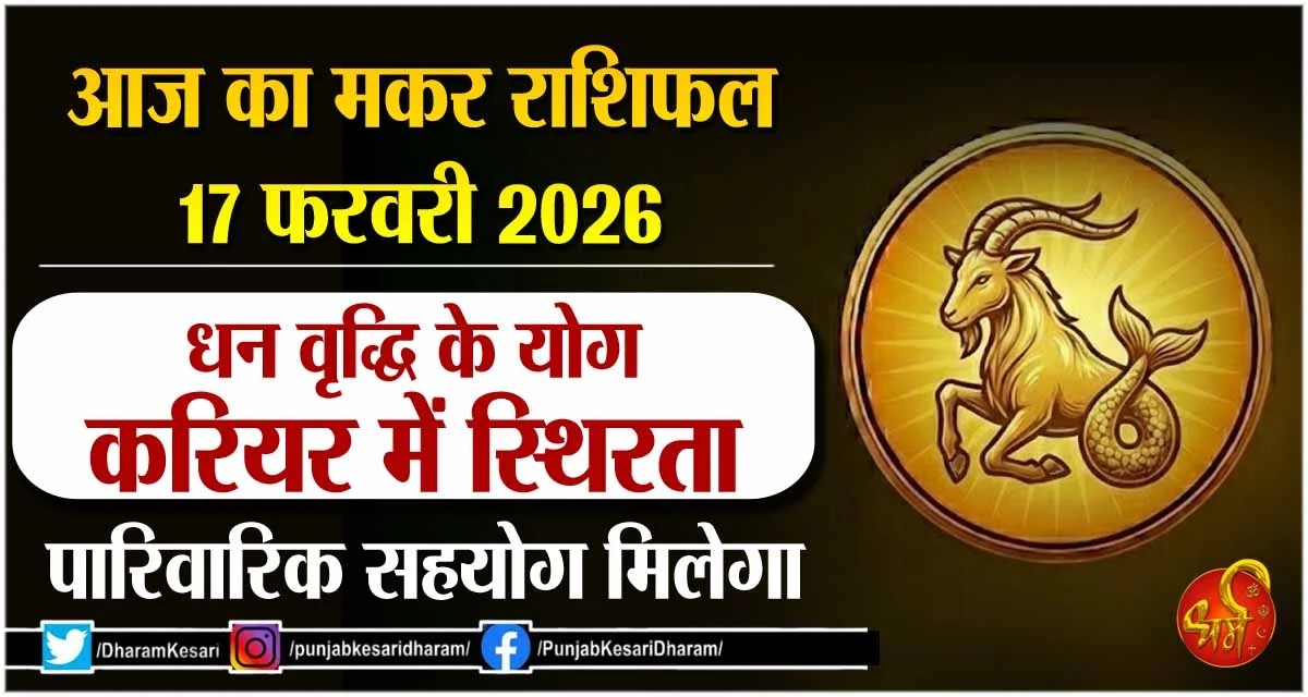 आज का मकर राशिफल 17 फरवरी 2026: धन वृद्धि के योग, करियर में स्थिरता, पारिवारिक सहयोग मिलेगा