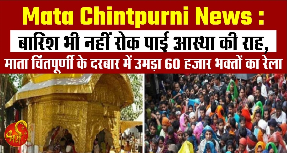 Mata Chintpurni News : बारिश भी नहीं रोक पाई आस्था की राह, माता चिंतपूर्णी के दरबार में उमड़ा 60 हजार भक्तों का रेला