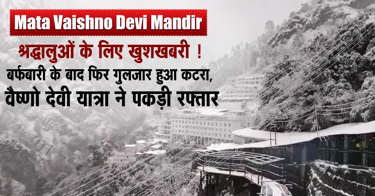 Mata Vaishno Devi Mandir : श्रद्धालुओं के लिए खुशखबरी ! बर्फबारी के बाद फिर गुलजार हुआ कटरा, वैष्णो देवी यात्रा ने पकड़ी रफ्तार