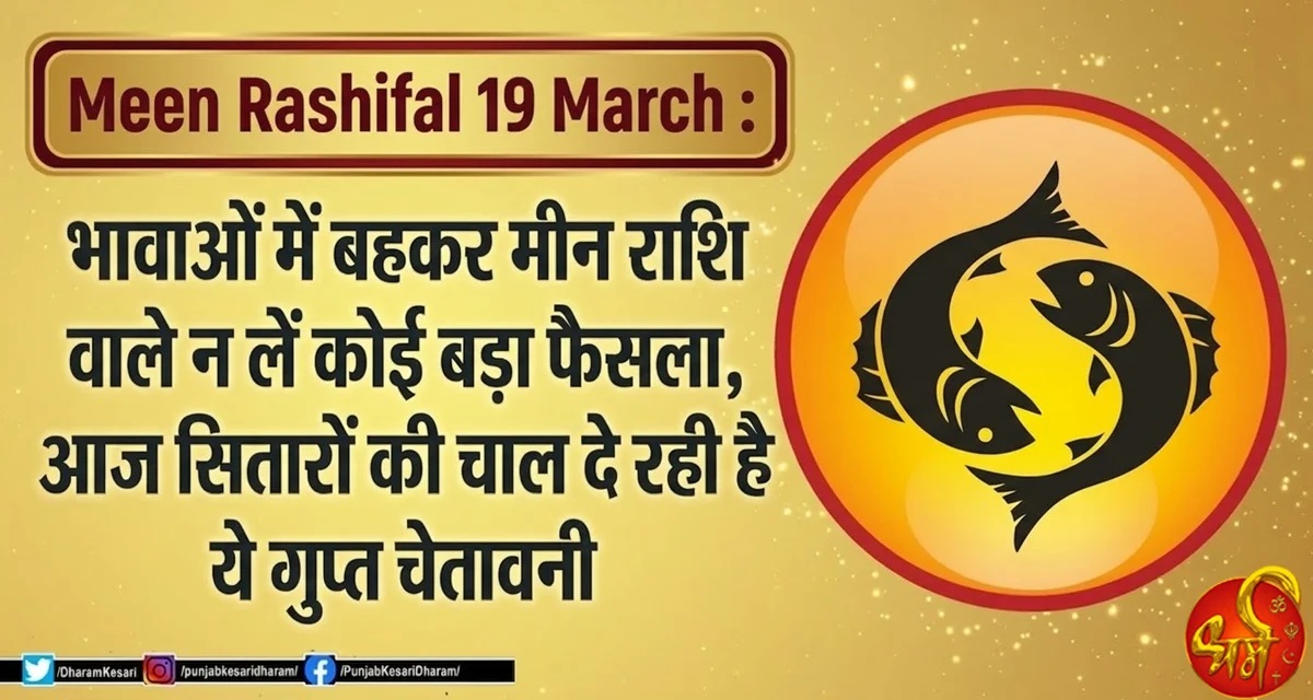 Meen Rashifal 19 March : भावनाओं में बहकर मीन राशि वाले न लें कोई बड़ा फैसला, आज सितारों की चाल दे रही है ये गुप्त चेतावनी