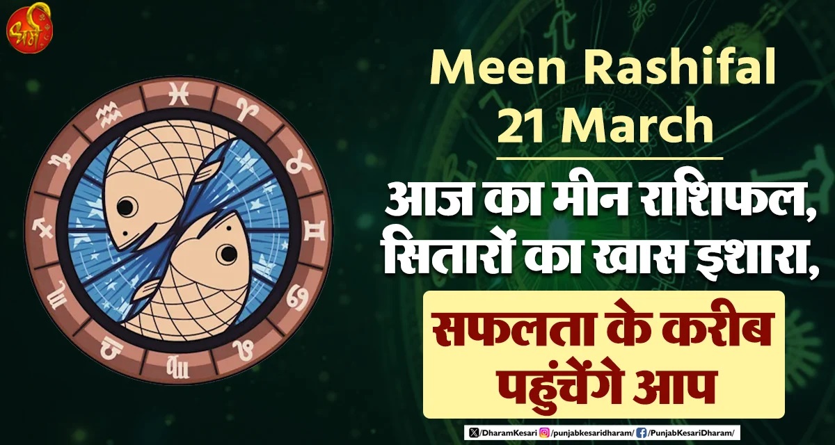 Meen Rashifal 21 March : 21 मार्च 2026 का दिन मीन राशि के जातकों के लिए एक अत्यंत आध्यात्मिक, रचनात्मक और सफलताओं की नींव रखने वाला दिन साबित होने वाला है। मीन राशि चक्र की अंतिम राशि है, जिसका स्वामी गुरुहै। यह राशि अपनी संवेदनशीलता, अंतर्ज्ञान और दयालु स्वभाव के लिए जानी जाती है। आज सितारों का खास इशारा आपकी आंतरिक शक्ति और सामाजिक प्रतिष्ठा की ओर है। जैसा कि आपने कहा, आज आप सफलता के बहुत करीब पहुंचने वाले हैं।