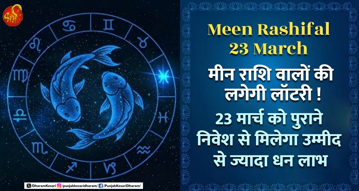 Meen Rashifal 23 March : ज्योतिष शास्त्र में मीन राशि को जल तत्व की अंतिम राशि माना जाता है, जिसके स्वामी स्वयं देवगुरु बृहस्पति हैं। मीन राशि के जातक अपनी संवेदनशीलता, अंतर्ज्ञान और आध्यात्मिक गहराई के लिए जाने जाते हैं। 23 मार्च 2026 का दिन आपके जीवन की आर्थिक पटकथा को फिर से लिखने जा रहा है। ग्रहों की एक ऐसी दुर्लभ युति बन रही है, जो आपके 'लाभ भाव' और भाग्य भाव को सीधे तौर पर सक्रिय कर रही है। ज्योतिषीय भाषा में कहें तो आज आपकी किस्मत की लॉटरी लगने वाली है। इसका अर्थ केवल जुआ या सट्टा नहीं, बल्कि वह धन है जो बिना किसी वर्तमान मेहनत के, आपके पुराने अच्छे कर्मों और निवेशों के परिणामस्वरूप आपके पास आएगा।