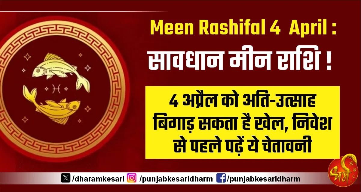 Meen Rashifal 4 April : सावधान मीन राशि ! 4 अप्रैल को अति-उत्साह बिगाड़ सकता है खेल, निवेश से पहले पढ़ें ये चेतावनी