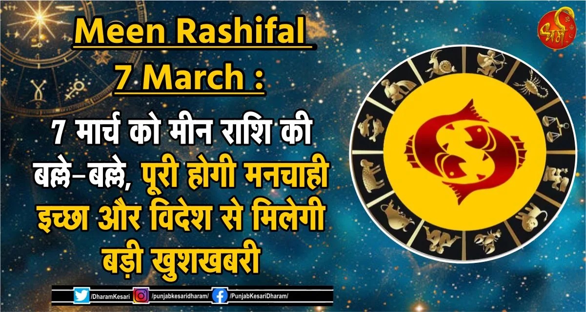 Meen Rashifal 7 March : 7 मार्च को मीन राशि की बल्ले-बल्ले, पूरी होगी मनचाही इच्छा और विदेश से मिलेगी बड़ी खुशखबरी
