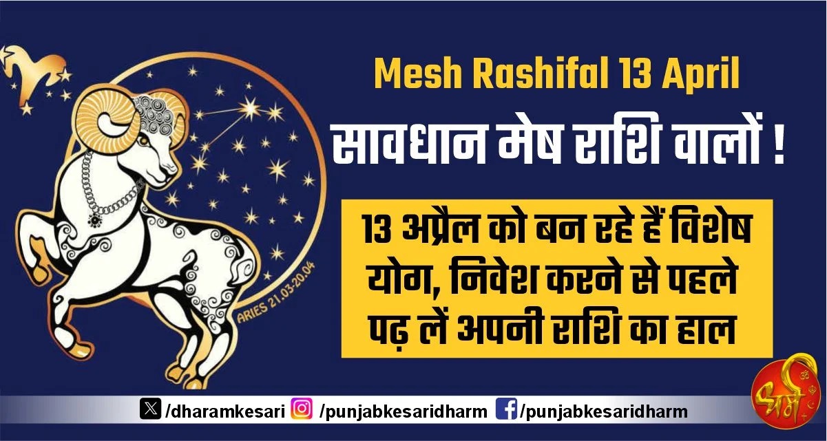 Mesh Rashifal 13 April : सावधान मेष राशि वालों ! 13 अप्रैल को बन रहे हैं विशेष योग, निवेश करने से पहले पढ़ लें अपनी राशि का हाल