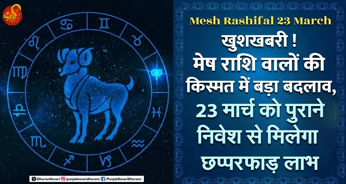 Mesh Rashifal 23 March : खुशखबरी ! मेष राशि वालों की किस्मत में बड़ा बदलाव, 23 मार्च को पुराने निवेश से मिलेगा छप्परफाड़ लाभ