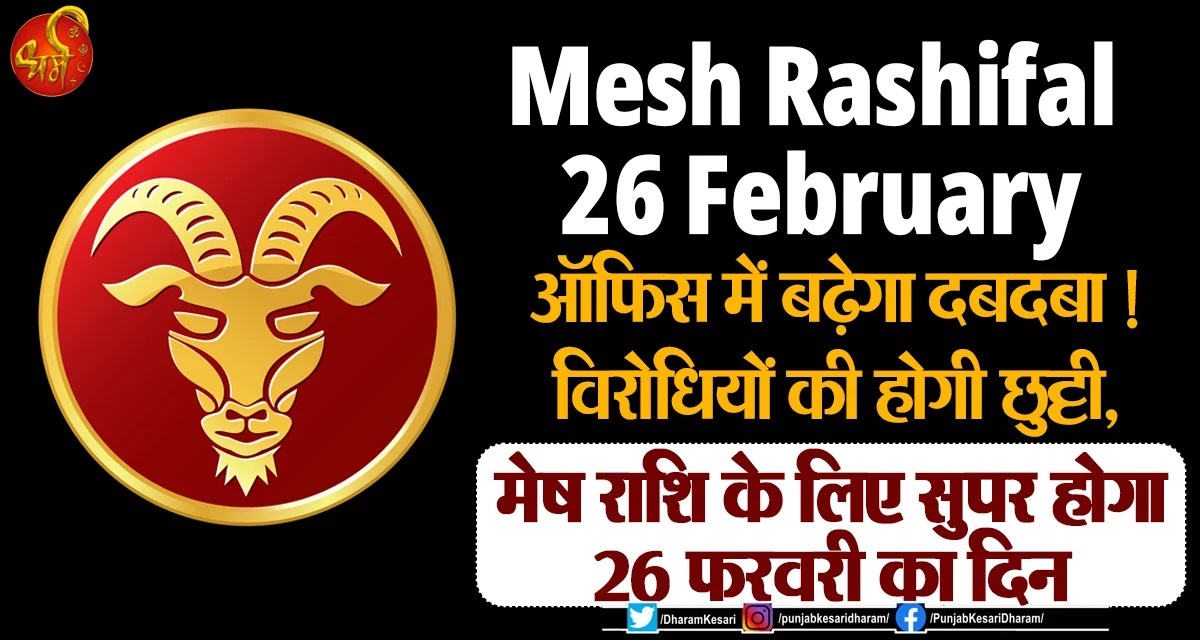 Mesh Rashifal 26 February : ऑफिस में बढ़ेगा दबदबा ! विरोधियों की होगी छुट्टी, मेष राशि के लिए सुपर होगा 26 फरवरी का दिन