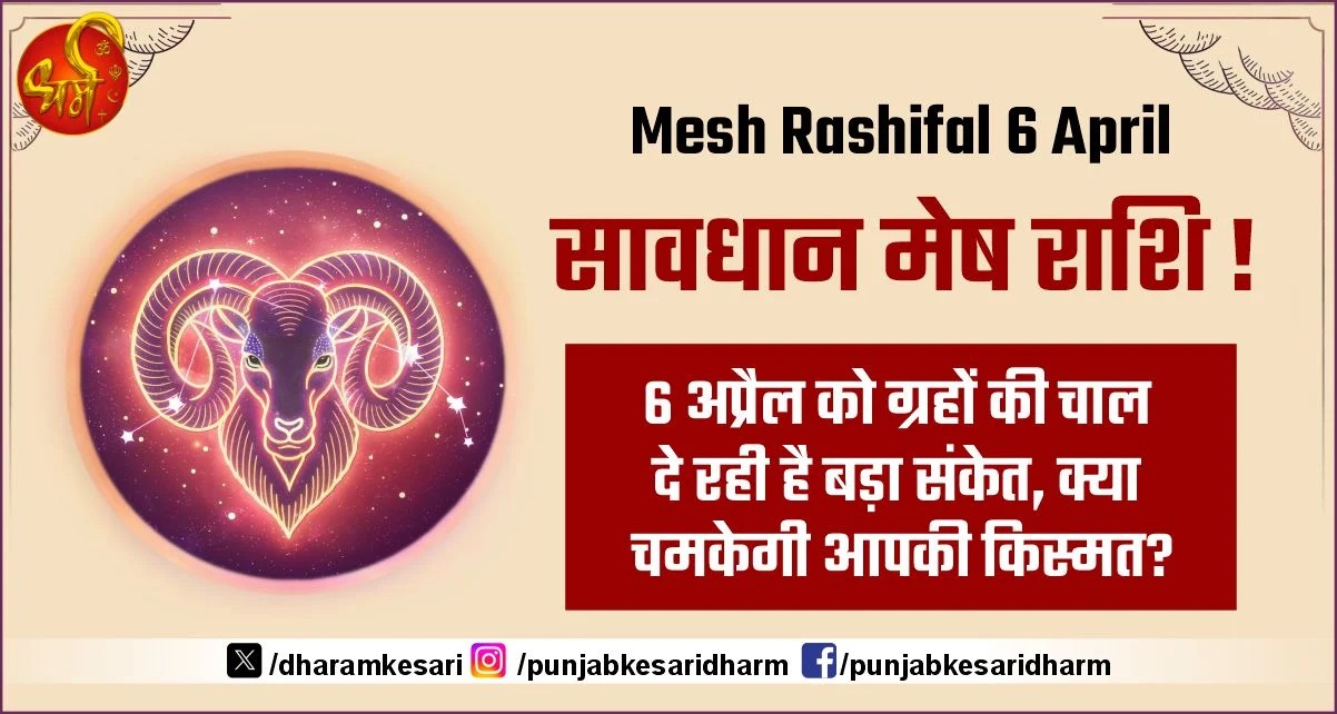 Mesh Rashifal 6 April : सावधान मेष राशि ! 6 अप्रैल को ग्रहों की चाल दे रही है बड़ा संकेत, क्या चमकेगी आपकी किस्मत?