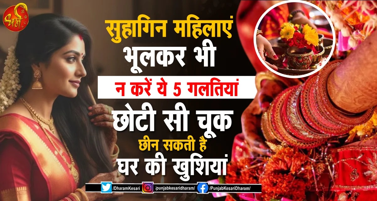 सुहागिन महिलाएं भूलकर भी न करें ये 5 गलतियां, छोटी सी चूक छीन सकती है घर की खुशियां