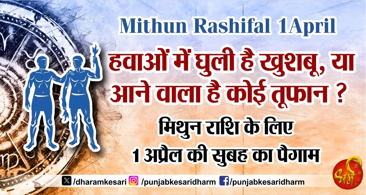Mithun Rashifal 1 April : हवाओं में घुली है खुशबू, या आने वाला है कोई तूफान ? मिथुन राशि के लिए 1 अप्रैल की सुबह का पैगाम