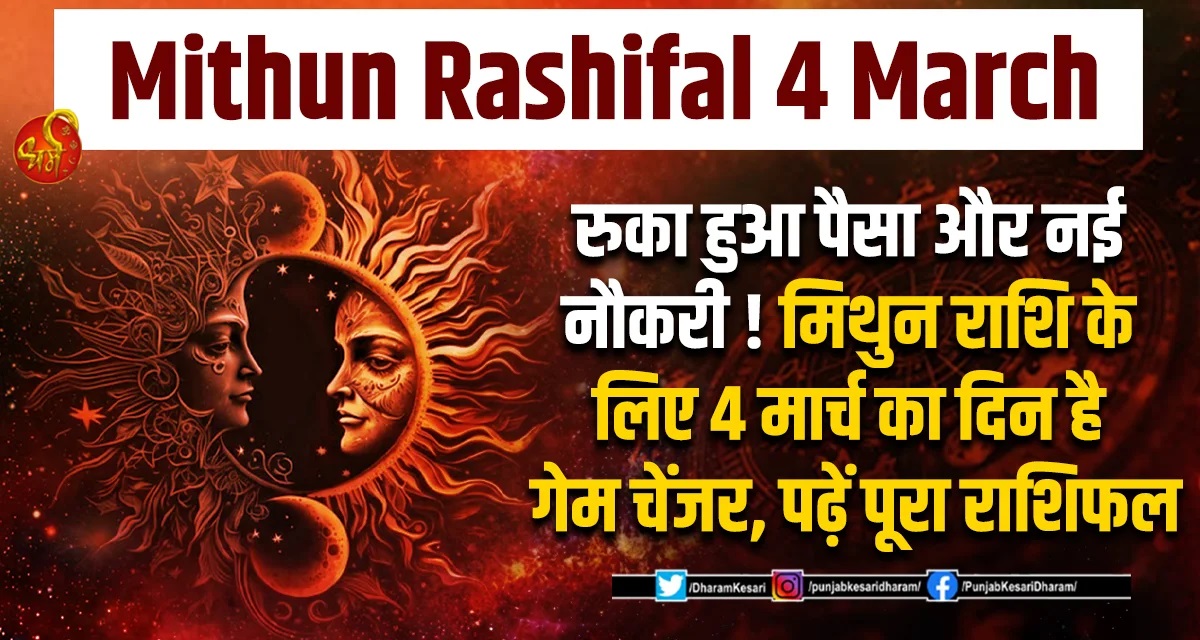 Mithun Rashifal 4 March : रुका हुआ पैसा और नई नौकरी ! मिथुन राशि के लिए 4 मार्च का दिन है गेम चेंजर, पढ़ें पूरा राशिफल