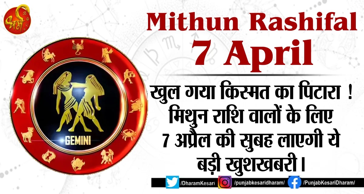 Mithun Rashifal 7 April : खुल गया किस्मत का पिटारा ! मिथुन राशि वालों के लिए 7 अप्रैल की सुबह लाएगी ये बड़ी खुशखबरी