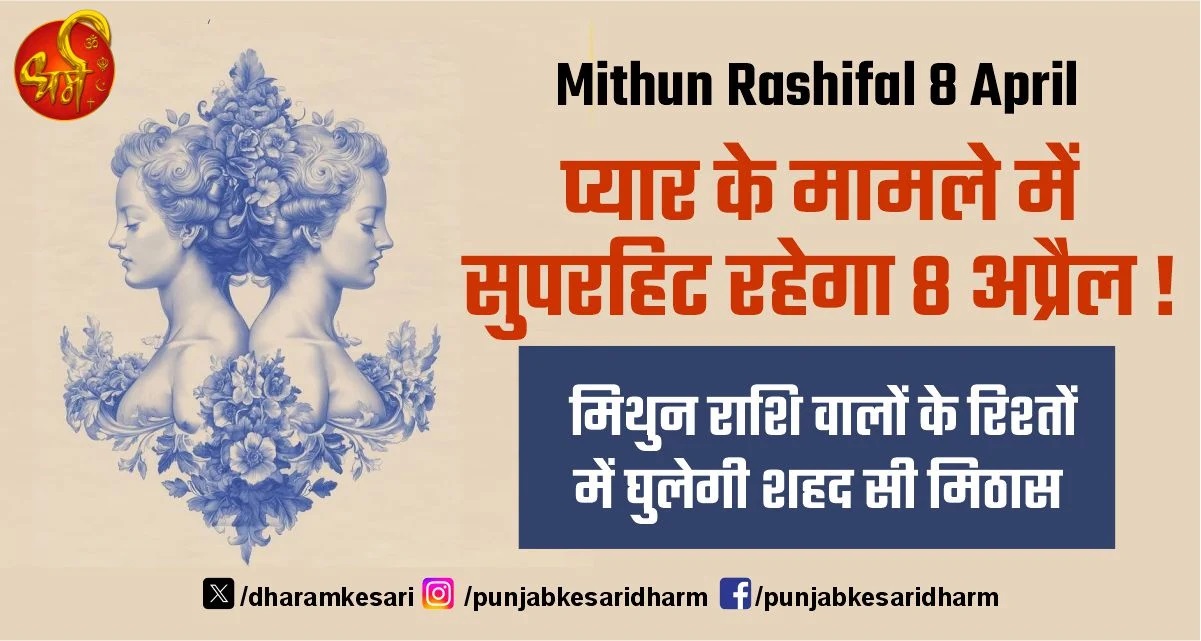 Mithun Rashifal 8 April : प्यार के मामले में सुपरहिट रहेगा 8 अप्रैल ! मिथुन राशि वालों के रिश्तों में घुलेगी शहद सी मिठास