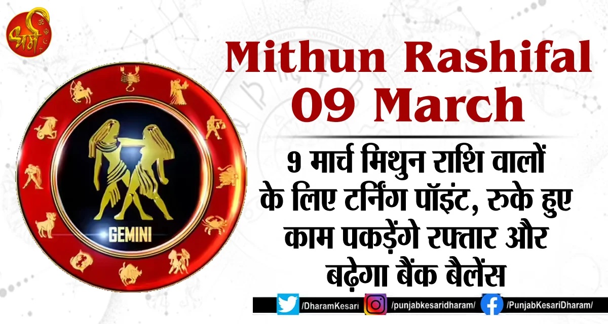 Mithun Rashifal 9 March : 9 मार्च मिथुन राशि वालों के लिए टर्निंग पॉइंट, रुके हुए काम पकड़ेंगे रफ्तार और बढ़ेगा बैंक बैलेंस