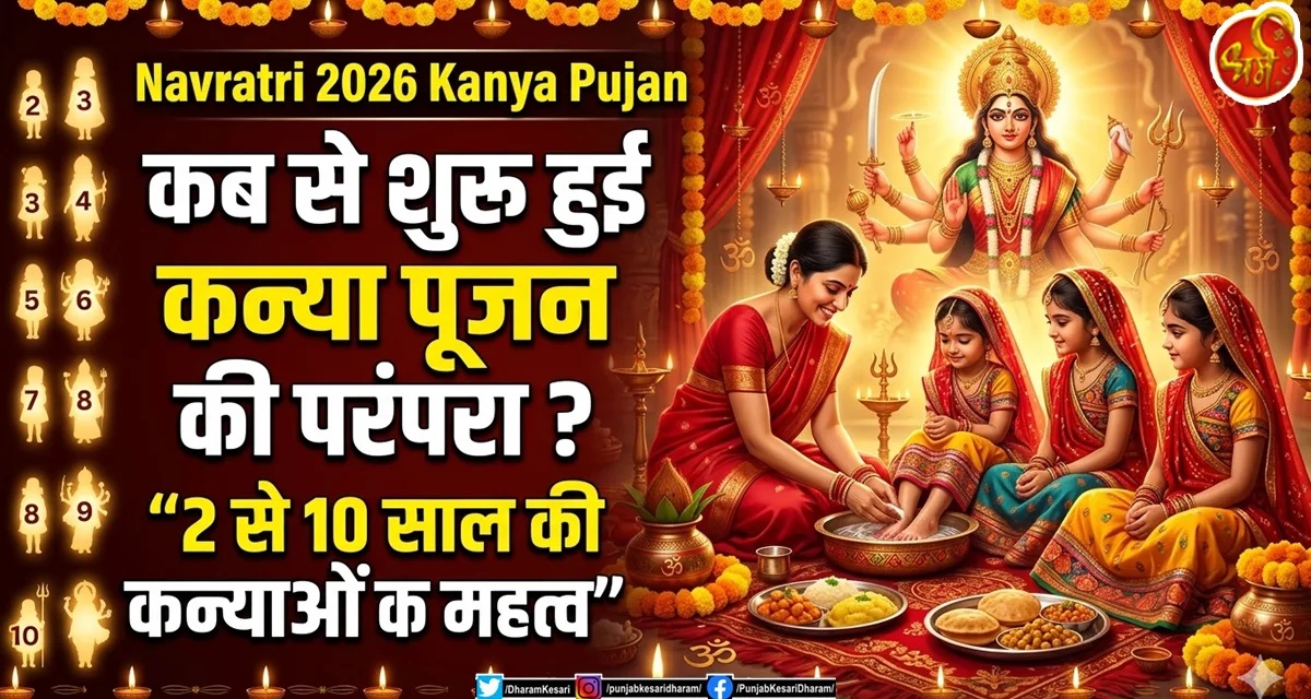 Navratri 2026 Kanya Pujan : नवरात्रि के नौ दिनों की अखंड साधना, उपवास और मंत्रोच्चार का पूर्ण फल तब तक प्राप्त नहीं होता, जब तक घर की चौखट पर नन्हीं देवियों के चरण न पड़ें। हिंदू धर्म में कन्या पूजन केवल एक पारंपरिक अनुष्ठान नहीं है, बल्कि यह नारी शक्ति के सबसे पवित्र और निष्पाप स्वरूप की आराधना का महापर्व है। चैत्र नवरात्रि 2026 में अष्टमी और नवमी के दिन जब श्रद्धालु कन्याओं के पैर पखारते हैं, तो वह दृश्य साक्षात देवलोक की अनुभूति कराता है। लेकिन आपने कभी सोचा है कि हाथ जोड़कर छोटी बालिकाओं के सामने शीश नवाने की यह परंपरा आखिर कब और क्यों शुरू हुई। पुराणों में क्यों कहा गया है कि 2 से 10 वर्ष की कन्याओं का पूजन ही श्रेष्ठ है। दरअसल, शास्त्र बताते हैं कि हर उम्र की कन्या माँ दुर्गा के एक विशेष स्वरूप का प्रतिनिधित्व करती है। तो आइए जानते हैं कन्या पूजन का पौराणिक इतिहास और विभिन्न आयु की कन्याओं के पूजन से मिलने वाले अद्भुत ज्योतिषीय लाभ के बारे में-