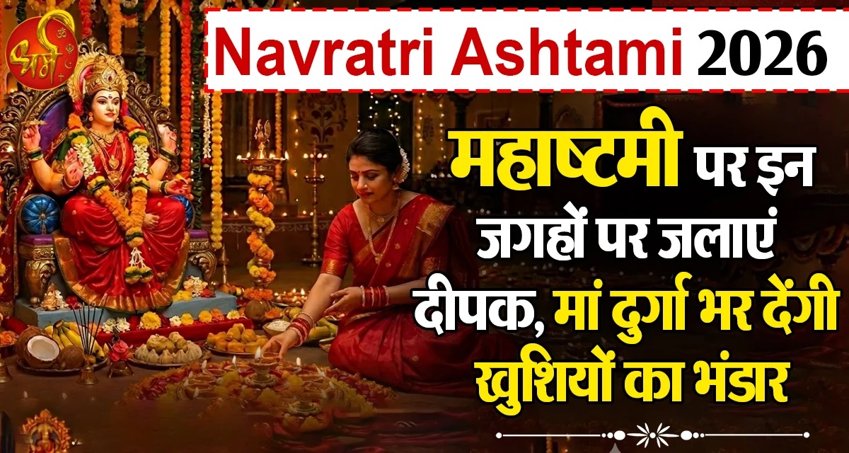 Navratri Ashtami 2026 : 2026 में महाष्टमी का पावन पर्व 26 मार्च को मनाया जाएगा। यह दिन मां महागौरी को समर्पित है और आध्यात्मिक रूप से अपनी ऊर्जा को जागृत करने और घर में सुख-समृद्धि के आह्वान के लिए सबसे शुभ माना जाता है। हिंदू धर्म में दीपक को ज्ञान और सकारात्मकता का प्रतीक माना गया है। महाष्टमी के दिन विशेष स्थानों पर दीपक प्रज्वलित करने से न केवल घर की नकारात्मकता दूर होती है बल्कि मां दुर्गा का आशीर्वाद भी प्राप्त होता है।