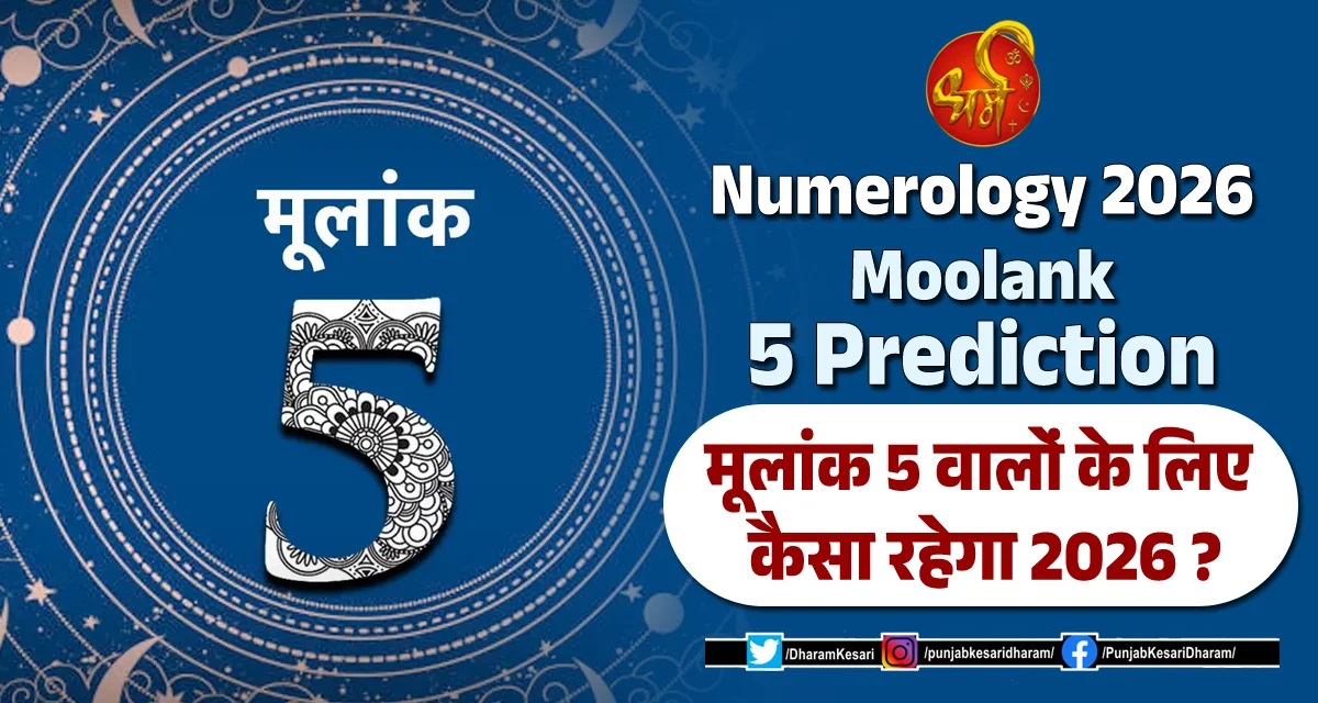 Numerology 2026 Moolank 5 Prediction: अंक ज्योतिष (Numerology Astrology) के अनुसार व्यक्ति का मूलांक उसके जीवन की दिशा, सोच, निर्णय क्षमता और भविष्य की संभावनाओं को दर्शाता है। जिन लोगों का जन्म 5, 14 या 23 तारीख को हुआ है, उनका मूलांक 5 होता है। मूलांक 5 का स्वामी बुध ग्रह है, जो बुद्धि, वाणी, व्यापार, संचार, तकनीक और चतुराई का कारक माना जाता है। साल 2026 अंक ज्योतिष की दृष्टि से मूलांक 5 वालों के लिए परिवर्तन, अवसर, सफलता और सीख का वर्ष साबित हो सकता है। आइए विस्तार से जानते हैं कि Numerology 2026 में मूलांक 5 वालों का करियर, धन, प्रेम, स्वास्थ्य, शिक्षा और उपाय कैसे रहेंगे।