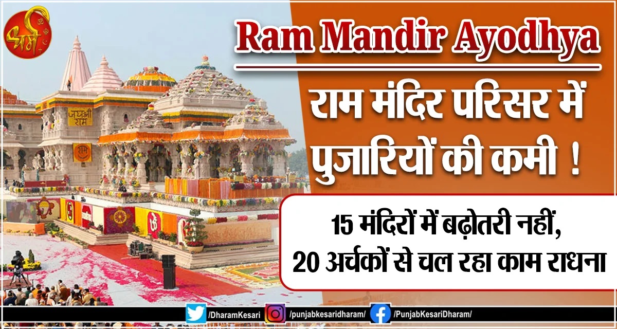Ram Mandir Ayodhya : राम मंदिर परिसर में पुजारियों की कमी ! 15 मंदिरों में बढ़ोतरी नहीं, 20 अर्चकों से चल रहा काम