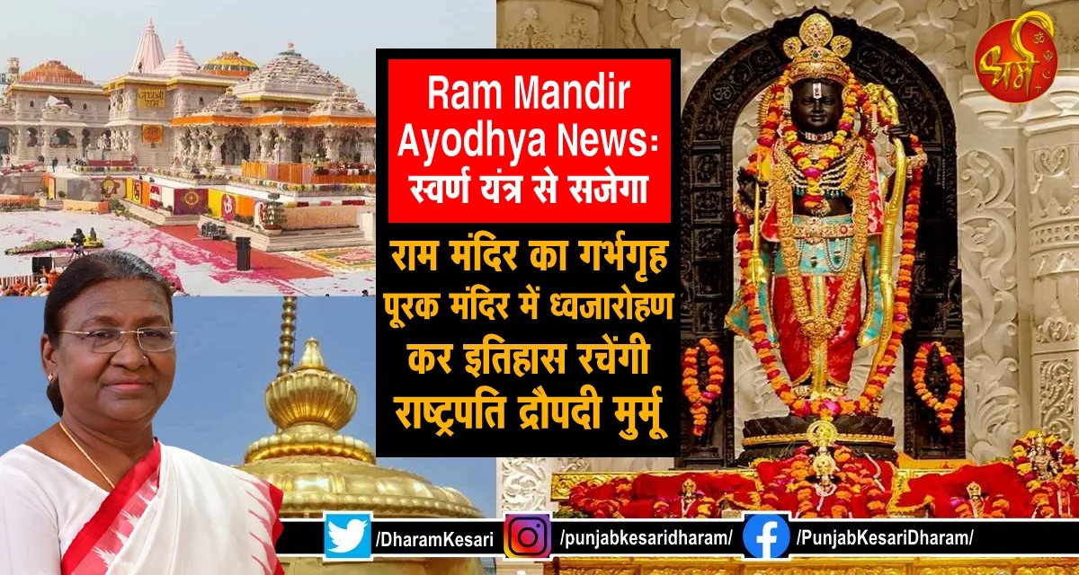 Ram Mandir Ayodhya News : स्वर्ण यंत्र से सजेगा राम मंदिर का गर्भगृह, पूरक मंदिर में ध्वजारोहण कर इतिहास रचेंगी राष्ट्रपति द्रौपदी मुर्मू