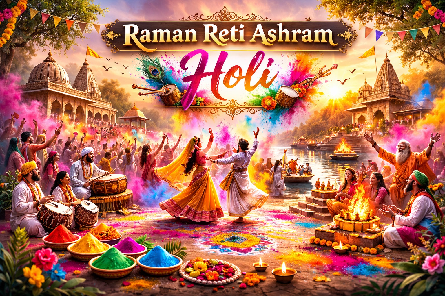 Raman Reti Ashram Holi : 6 कुंतल फूलों की बारिश और गुलाल का गुबार, आज रमणरेती आश्रम में सजेगा होली का दरबार