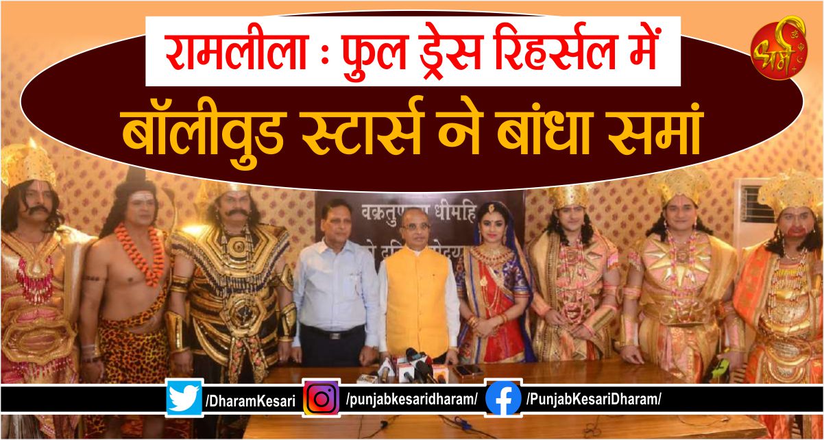 नई दिल्ली: लालकिला मैदान में विश्व की सबसे बड़ी और लोकप्रिय लवकुश रामलीला के सभी कलाकारों ने अपने किरदार के फुल ड्रेस रिहर्सल में समां बांध दिया। इस फुल ड्रेस रिहर्सल को देखने बड़ी संख्या में दर्शक भी पहुंचने थे। बता दें कि इस दौरान फिल्म इंडस्ट्री के जाने माने स्टार्स देबलीना चटर्जी(सीता), राघव तिवारी(राम), अखिलेंद्र मिश्रा(रावण), अरुण मंडोला(लक्ष्मण), निर्भय वाधवा(हनुमान), नारद(असरानी), केवट(मनोज तिवारी), मंदोदरी(अमिता नांगिया), मनीष चतुर्वेदी(शिव), मोहित त्यागी(विभीषण) के साथ डायरेक्टर परवेश की युवा टीम के कलाकारो के साथ लीला के प्रमुख दृश्यों की रिहर्सल और लीला में मंचित होने वाले एक्शन, स्टंट दृश्यों का दर्शकों ने आनंद लिया। लीला के अध्यक्ष अर्जुन कुमार ने कहा कि इस साल अद्भूत और चमत्कारी दृश्यों और फिल्म इंडस्ट्री के अनुभवी और नामी एक्शन डायरेक्टर मनोज की देखरेख में लीला के आकाश मार्ग पर युद्ध के दृश्यों और राम-रावण युद्ध के जबरदस्त सीन को करने की पूरी तैयारी कर ली गई है।