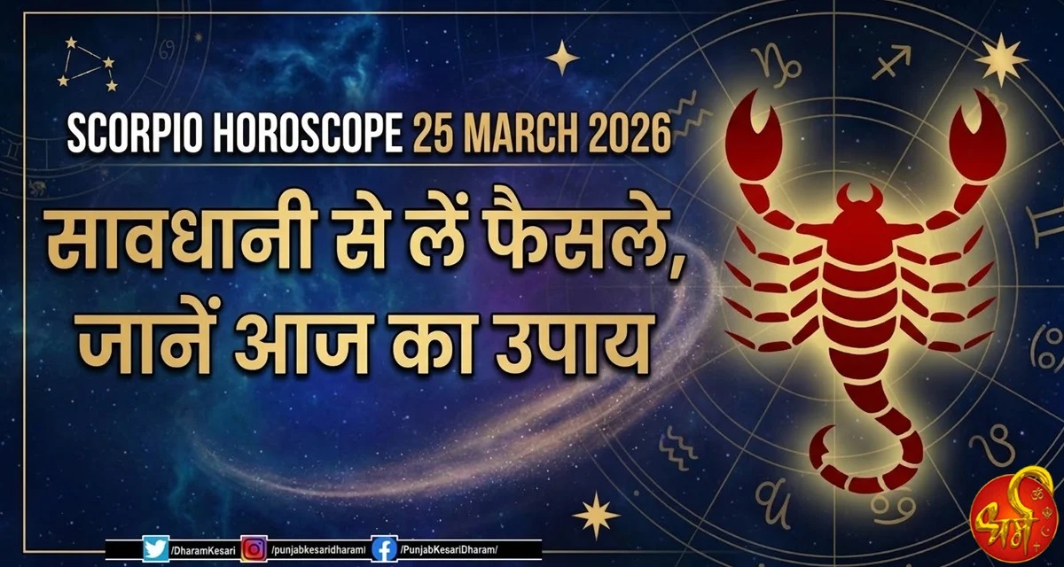Vrishchika Rashifal 25 march 2026 आज का वृश्चिक राशिफल 25 मार्च 2026: वृश्चिक राशि के जातकों के लिए 25 मार्च 2026 का दिन मिश्रित परिणाम देने वाला रह सकता है। आज आपको विशेष रूप से अपने निर्णयों में सावधानी बरतने की आवश्यकता है। जल्दबाजी या भावनाओं में बहकर लिया गया कोई भी फैसला आगे चलकर परेशानी का कारण बन सकता है।