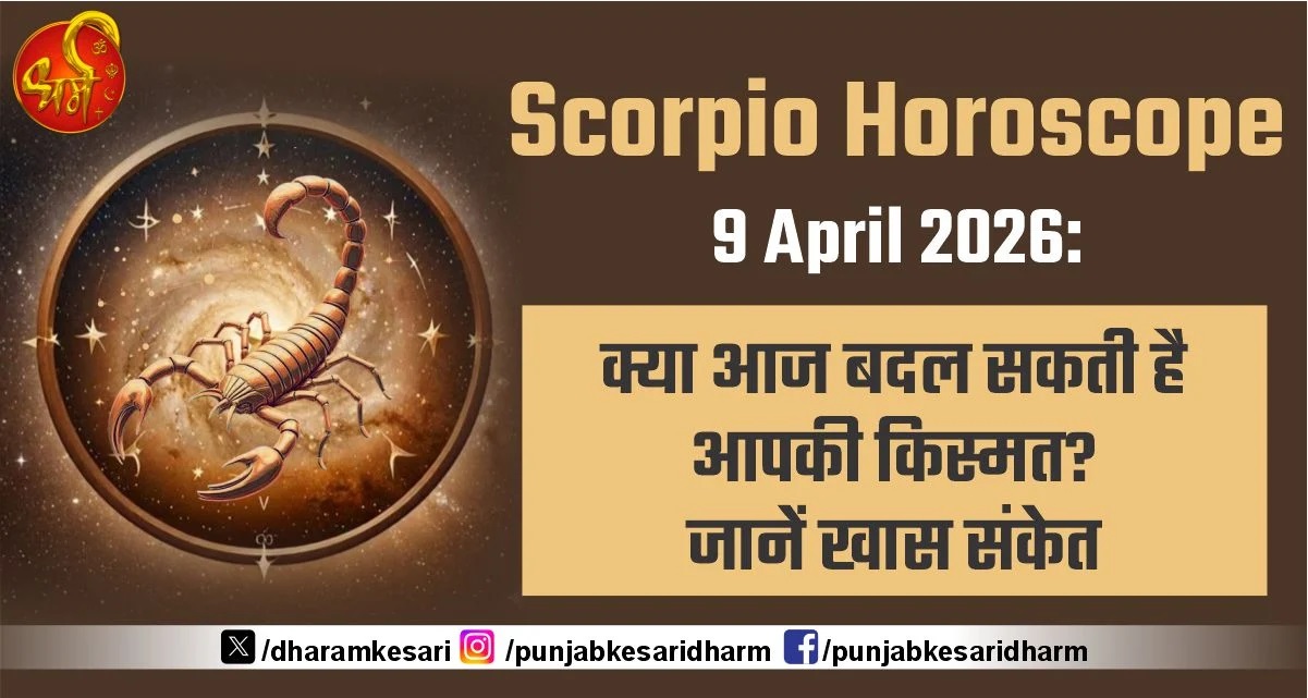 Vrishchika Rashifal 9 April 2026 आज का वृश्चिक राशिफल 9 अप्रैल 2026: वैदिक ज्योतिष के अनुसार आज का दिन वृश्चिक राशि के जातकों के लिए परिवर्तन, गहराई और नई संभावनाओं से भरा रहेगा। ग्रहों की स्थिति आपके पक्ष में है, जिससे आप अपने जीवन के महत्वपूर्ण क्षेत्रों में प्रगति कर सकते हैं। आज आपका आत्मविश्वास बढ़ा रहेगा और आप कठिन परिस्थितियों का सामना भी साहस के साथ करेंगे।