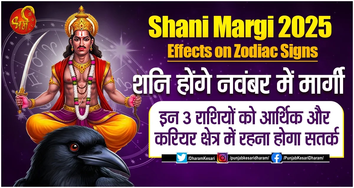 Shani Margi 2025 Effects on Zodiac Signs: हिंदू ज्योतिष के अनुसार शनि ग्रह न्याय के देवता माने जाते हैं। वे हर व्यक्ति को उसके कर्मों के अनुसार फल देते हैं। 28 नवंबर 2025 को शनि देव मीन राशि में मार्गी (direct) गति आरंभ करेंगे। जब शनि वक्री से मार्गी होते हैं तो उनका प्रभाव अत्यंत शक्तिशाली हो जाता है यानी अब वे अपने न्याय का सीधा परिणाम देंगे। यह परिवर्तन कई राशियों के लिए शुभ अवसर लेकर आएगा लेकिन 3 राशियां ऐसी हैं, जिनको यह समय तनाव, आर्थिक चुनौतियां और करियर में उतार-चढ़ाव दे सकता है।