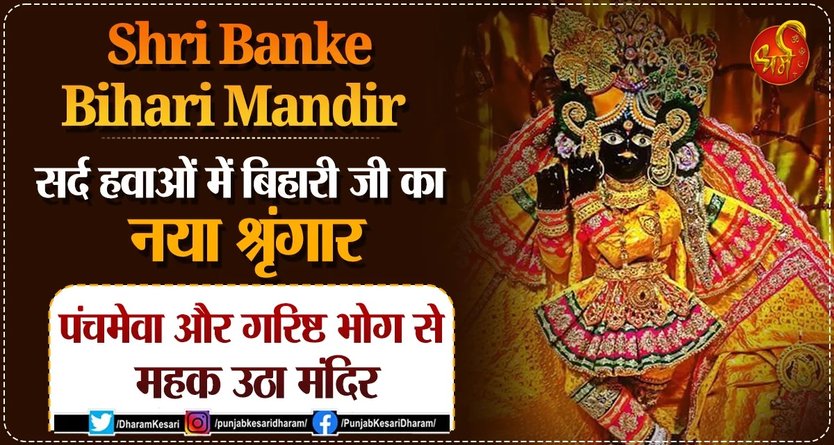 Shri Banke Bihari Mandir: सर्द हवाओं में बिहारी जी का नया श्रृंगार, पंचमेवा और गरिष्ठ भोग से महक उठा मंदिर
