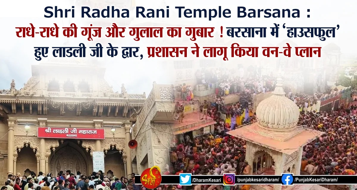 Shri Radha Rani Temple Barsana : राधे-राधे की गूंज और गुलाल का गुबार ! बरसाना में 'हाउसफुल' हुए लाडली जी के द्वार, प्रशासन ने लागू किया वन-वे प्लान