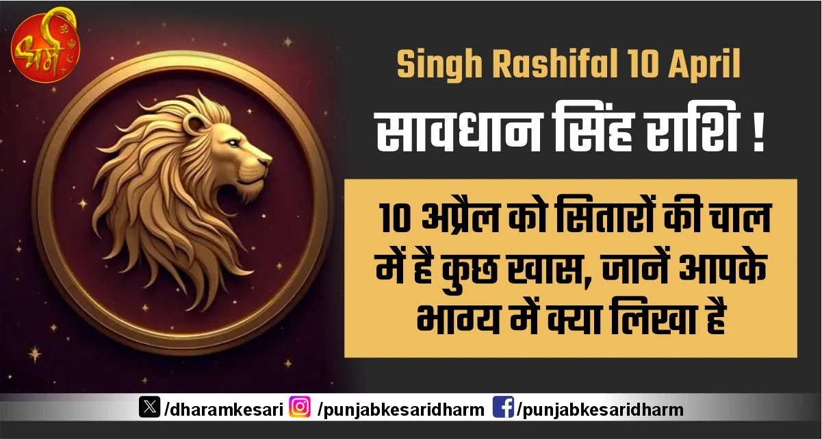 Singh Rashifal 10 April : सावधान सिंह राशि ! 10 अप्रैल को सितारों की चाल में है कुछ खास, जानें आपके भाग्य में क्या लिखा है