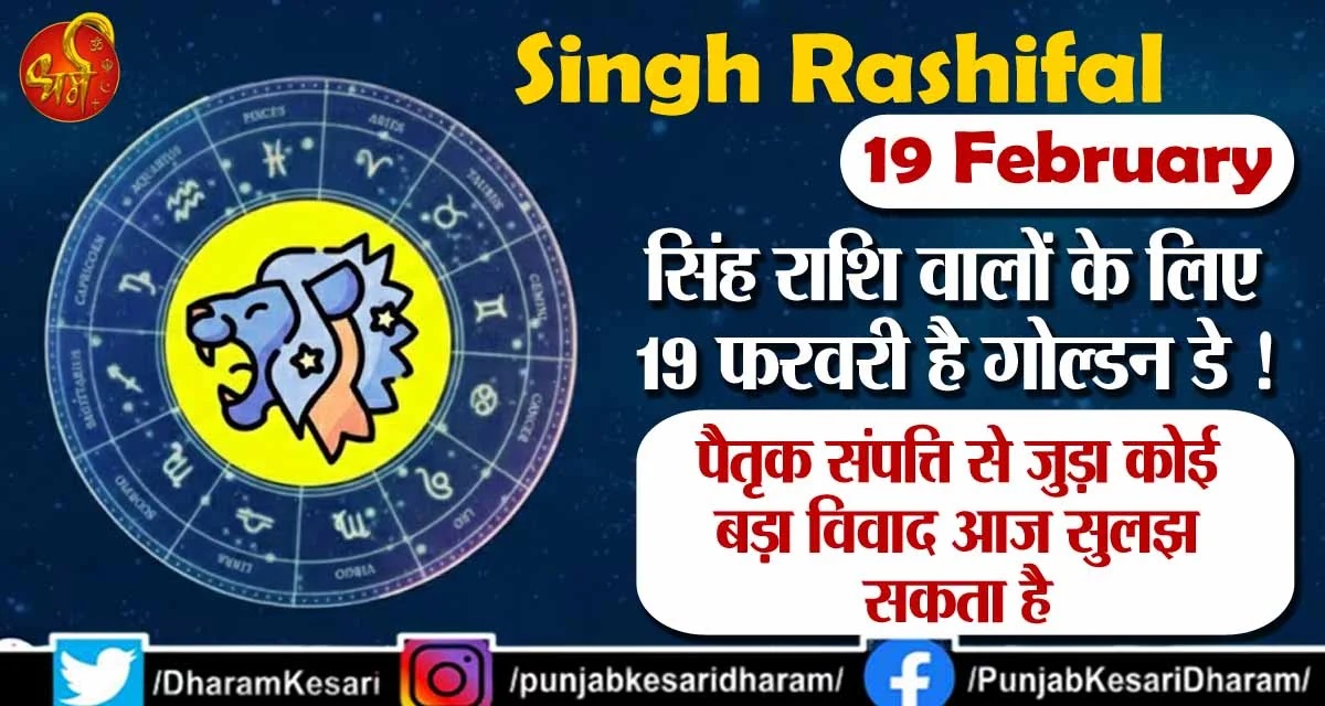 Singh Rashifal 19 February : सिंह राशि वालों के लिए 19 फरवरी है गोल्डन डे ! पैतृक संपत्ति से जुड़ा कोई बड़ा विवाद आज सुलझ सकता है