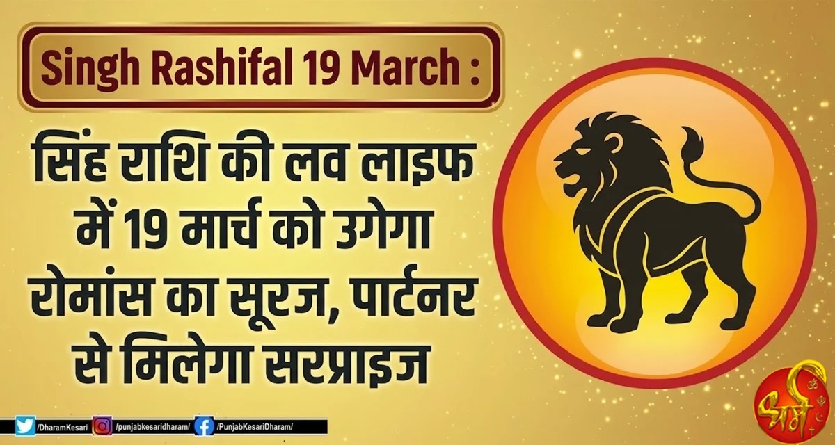 Singh Rashifal 19 March : सिंह राशि की लव लाइफ में 19 मार्च को उगेगा रोमांस का सूरज, पार्टनर से मिलेगा सरप्राइज