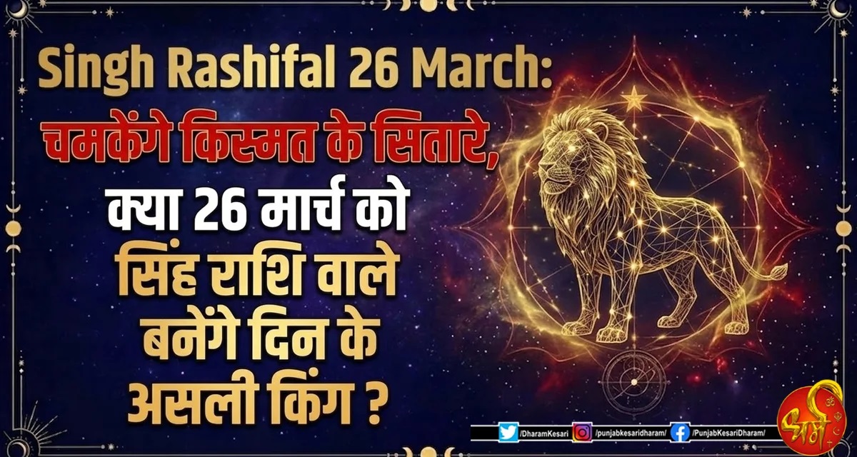 Singh Rashifal 26 March : सिंह राशि के जातकों के लिए 26 मार्च 2026 का दिन किसी राजयोग से कम नहीं है। आपकी राशि का स्वामी सूर्य है जो मान-सम्मान, सत्ता और तेज का प्रतीक है। ज्योतिषीय गणना के अनुसार, इस दिन ग्रहों की स्थिति आपके पक्ष में एक ऐसी विजयी ऊर्जा का निर्माण कर रही है जो आपको समाज और कार्यक्षेत्र में एक किंग की तरह स्थापित कर सकती है। लेकिन, राजपाठ संभालने के साथ-साथ जिम्मेदारियां और सावधानियां भी आती हैं। क्या आप इस दिन के सुनहरे अवसरों का लाभ उठा पाएंगे ? आइए विस्तार से जानते हैं कि 26 मार्च आपके करियर, वित्त, प्रेम और स्वास्थ्य के लिए क्या संदेश लेकर आया है।