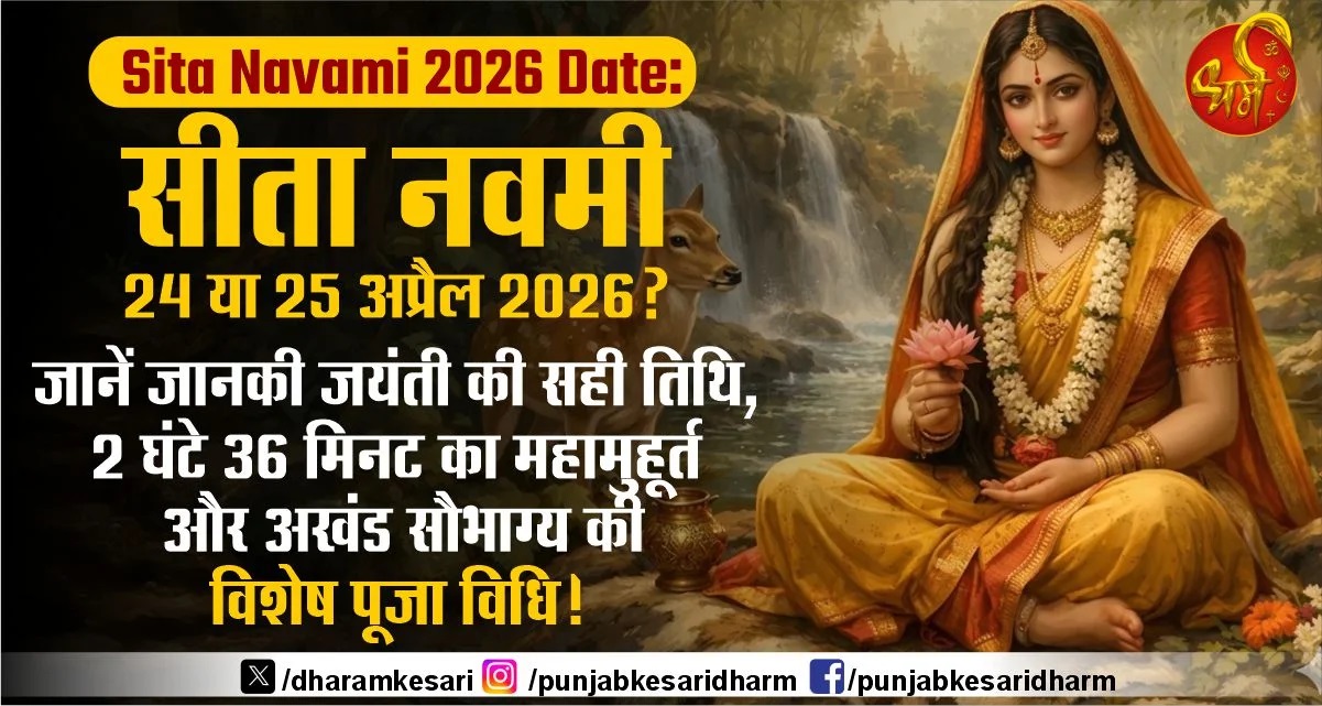 पंचांग के अनुसार, वैशाख शुक्ल पक्ष की नवमी तिथि का आगाज़ 24 अप्रैल 2026 को रात 07:21 बजे हो रहा है। यह तिथि अगले दिन यानी 25 अप्रैल 2026 को शाम 06:27 बजे समाप्त होगी। चूंकि हिंदू धर्म में व्रत और त्योहारों के लिए उदयातिथि (सूर्योदय के समय मौजूद तिथि) को ही प्रधानता दी जाती है, इसलिए इस साल सीता नवमी का पर्व और व्रत 25 अप्रैल, शनिवार को ही मनाया जाएगा।