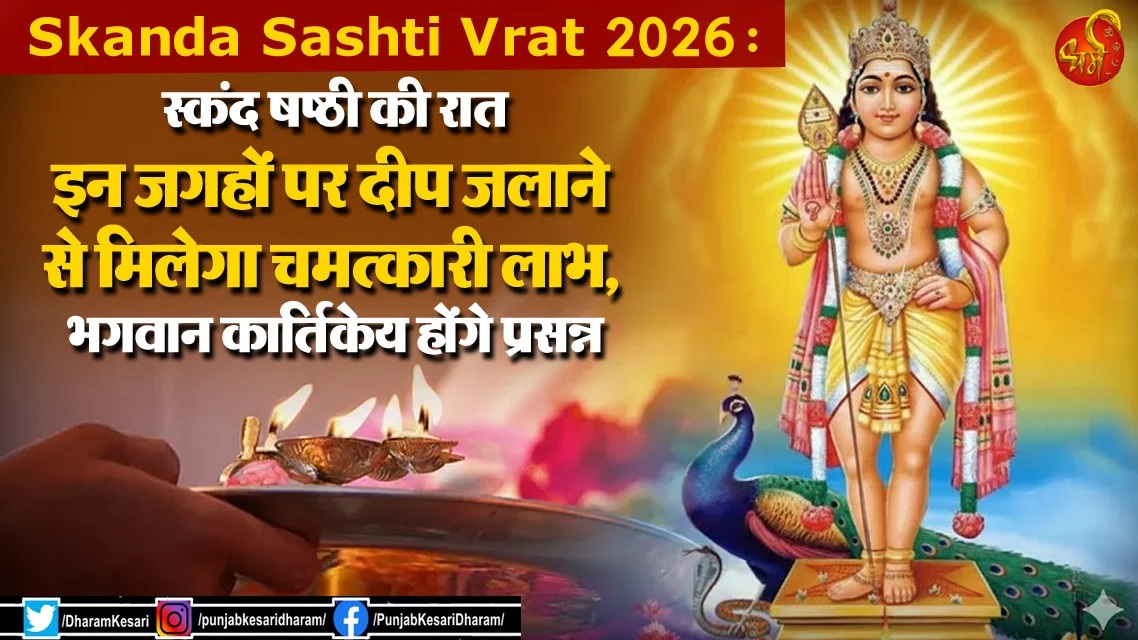 Skanda Sashti Vrat 2026 : हिंदू धर्म में स्कंद षष्ठी का व्रत भगवान कार्तिकेय को समर्पित है। वर्ष 2026 में स्कंद षष्ठी का विशेष महत्व है क्योंकि यह दिन शत्रुओं पर विजय, संतान सुख और जीवन की बाधाओं को दूर करने वाला माना जाता है। शास्त्रों के अनुसार, स्कंद षष्ठी की रात को कुछ विशेष स्थानों पर दीपक प्रज्वलित करने से न केवल भगवान कार्तिकेय प्रसन्न होते हैं, बल्कि भक्तों को चमत्कारी लाभ भी प्राप्त होते हैं। आइए विस्तार से जानते हैं दीप दान का महत्व।