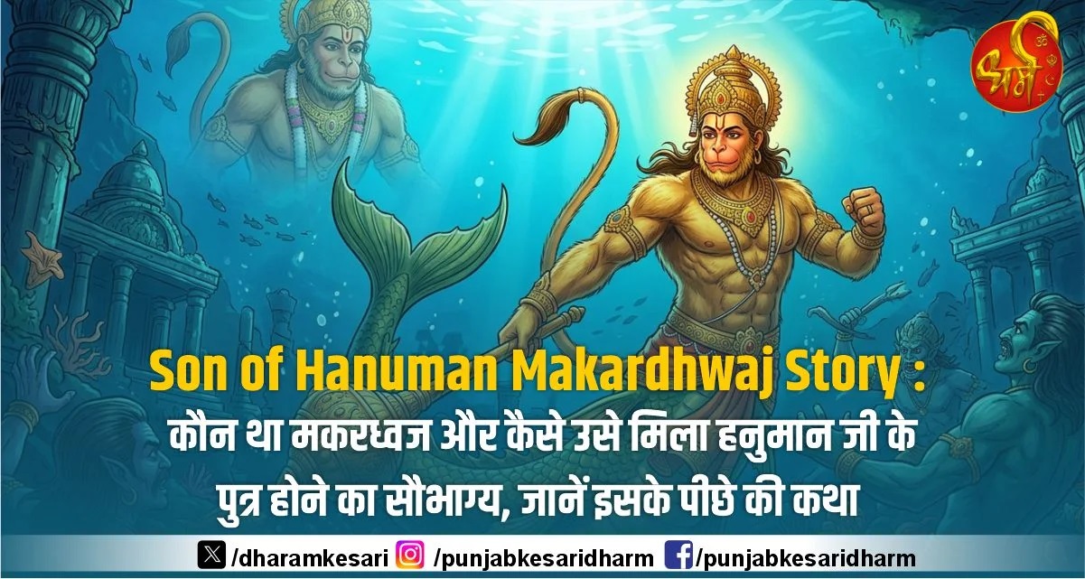 Son of Hanuman Makardhwaj Story : रामायण की महागाथा में हनुमान जी को अनंत बलशाली और परम ब्रह्मचारी के रूप में पूजा जाता है, लेकिन क्या आप जानते हैं कि शास्त्र एक ऐसे प्रतापी योद्धा का भी वर्णन करते हैं जिसे हनुमान पुत्र होने का गौरव प्राप्त है। इस रहस्यमयी योद्धा का नाम है मकरध्वज। मकरध्वज के जन्म की कहानी जितनी अलौकिक है, उतनी ही रोमांचक भी, जिसका संबंध लंका दहन के बाद हनुमान जी के समुद्र में विश्राम करने से जुड़ा है। बिना किसी मिलन के हनुमान जी का पसीना कैसे एक पुत्र के जन्म का आधार बना और कैसे पाताल लोक के द्वार पर पिता-पुत्र का पहली बार सामना हुआ, यह कथा भक्ति और आश्चर्य का अद्भुत संगम है। तो आइए जानते हैं कि कौन था मकरध्वज और कैसे वह पाताल लोक का राजा बना।