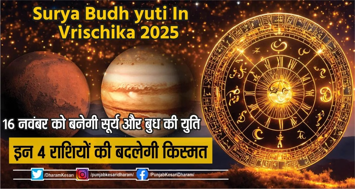 Surya Budh yuti In Vrischika 2025: 16 नवंबर को बनेगी सूर्य और बुध की युति, इन 4 राशियों की बदलेगी किस्मत