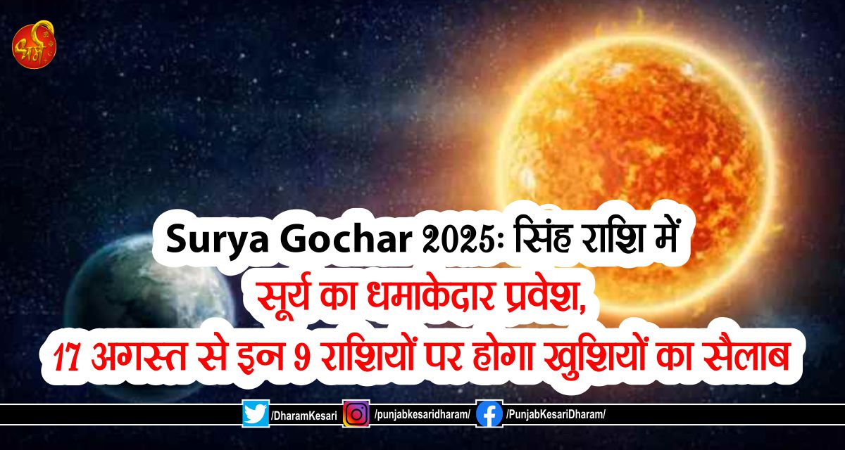 Surya Gochar 2025: सिंह राशि में सूर्य का धमाकेदार प्रवेश, 17 अगस्त से इन 9 राशियों पर होगा खुशियों का सैलाब
