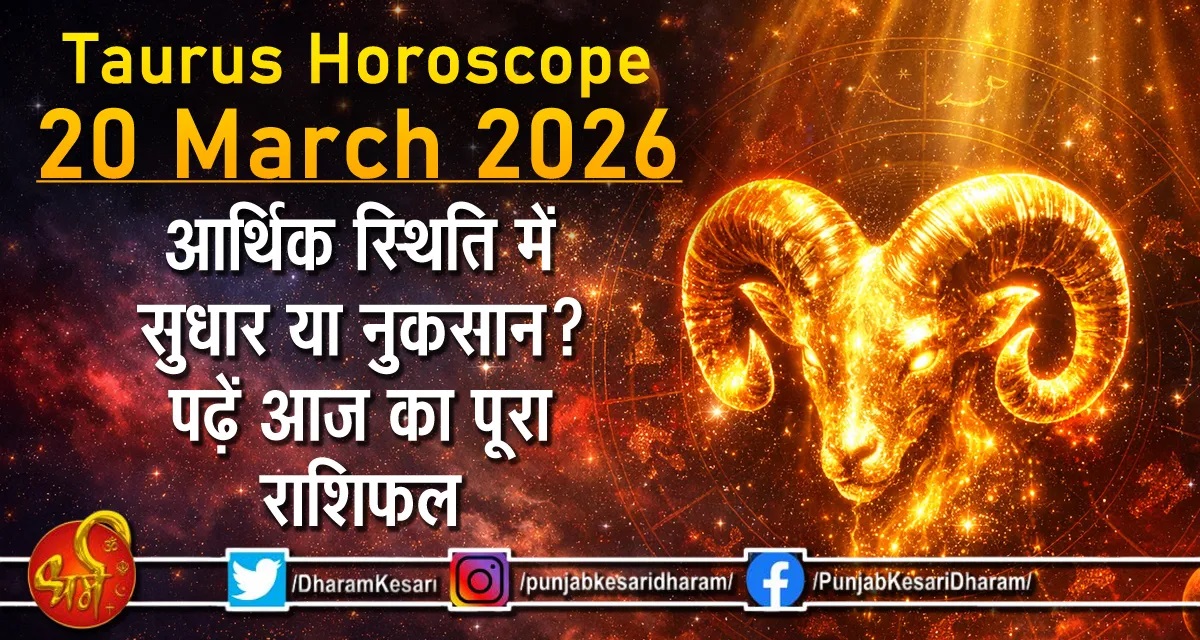 Taurus Horoscope 20 march 2026 आज का वृषभ राशिफल 20 मार्च 2026: 20 मार्च 2026 का दिन वृषभ राशि के जातकों के लिए मिला-जुला लेकिन संभावनाओं से भरा हुआ रहने वाला है। वैदिक ज्योतिष के अनुसार आज ग्रहों की चाल आपके आर्थिक जीवन, करियर और रिश्तों पर गहरा प्रभाव डाल रही है। विशेष रूप से धन से जुड़े मामलों में आपको सतर्कता और समझदारी के साथ कदम बढ़ाने की आवश्यकता है।