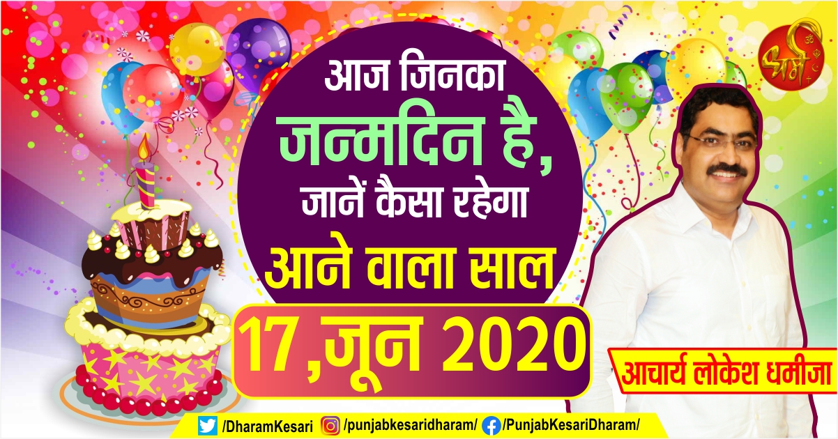 Todays Birthday Prediction: आज आप के जन्मदिन की आप को बहुत-बहुत शुभकामनाएं। 17 जून में जन्में व्यक्तियों का मूलांक 8 होता है, जिन के स्वामी शनि देव हैं। मूलांक 8 वाले जातक विरक्त प्रकृति के होते हैं। ये लोग दूसरों के साथ ज्यादा घुल-मिल नहीं पाते। जीवन में दौड़-धूप लगी रहती है परन्तु फिर भी ये लोग न्यायप्रिय होते हैं। इस वर्ष आपको चाहिए कि आप अपने कामों का सिरे से निरीक्षण करें। पूरी लगन व योजनाबद्ध तरीके से कामों को पूरा करें।