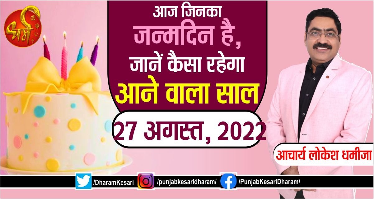 Today's Birthday Prediction: आज आपके जन्मदिन की आपको बहुत-बहुत शुभकामनाएं। 27 अगस्त में जन्में व्यक्तियों का मूलांक 9 होता है, जिनके स्वामी मंगल देव हैं। मूलांक 9 वाले जातक साहसी और निडर होते हैं। ये लोग किसी भी काम को करने से घबराते नहीं हैं। जल्दी से परिस्थितियों के सामने हार नहीं मानते। हर कठिन से कठिन कार्य को करने के लिए तत्पर रहते हैं। मूलांक 9 वाले जातको का स्वभाव रौबदार होता है। इन लोगों की आवाज में भी भारीपन होता है। मूलांक 9 वाले जातकों को गुस्सा बहुत जल्दी आ जाता है। ये लोग हर छोटी-छोटी बात पर क्रोधित हो जाते हैं परंतु इन लोगों का गुस्सा लंबे समय तक नहीं ठहरता। ये लोग लड़ाई-झगड़े को भूलकर आगे बढ़ जाते हैं। मूलांक 9 वाले जातक काफी गहरी मित्रता निभाते हैं। इन लोगों के लिए इनके मित्र भाई जैसे होते हैं। मूलांक 9 वाले जातक हमेशा दूसरों की मदद करने के लिए तैयार रहते हैं। मूलांक 9 वाले जातकों को अपनी बड़ाई और तारीफ सुनना अच्छा लगता है। जबकि इन लोगों को ऐसे चापलूसों से दूर रहना चाहिए क्योंकि लोग बहुत बार इनकी इस आदत का गलत फायदा उठाने की कोशिश करते हैं। लोग इनके सामने इनकी अच्छाइयों का बखान अपने काम निकलवाने के लिए करते हैं, जिसको ये लोग समझ नहीं पाते।