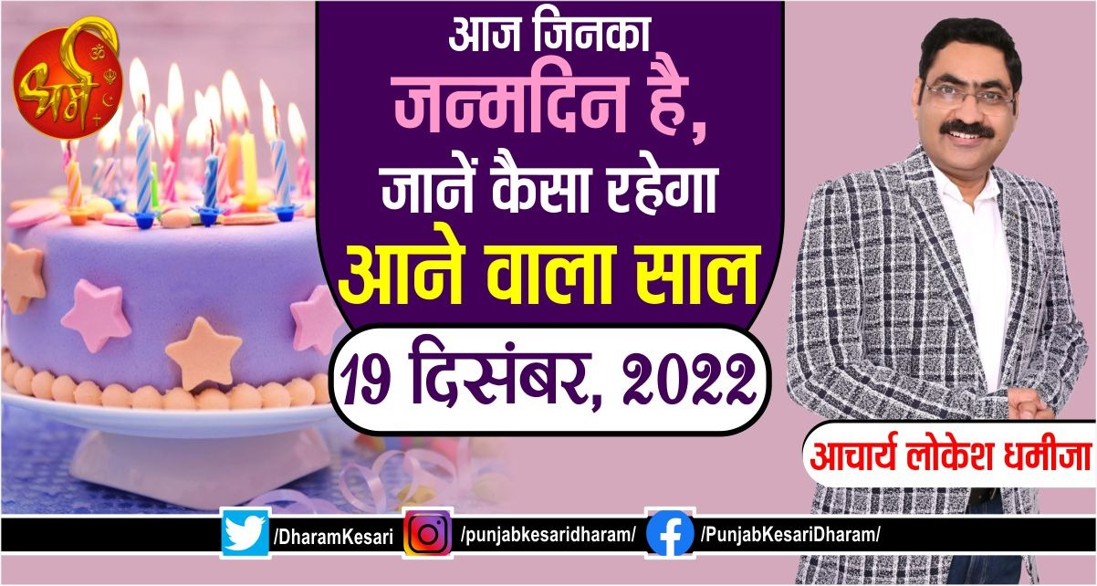 Today's Birthday Prediction: आज आपके जन्मदिन की आपको बहुत-बहुत शुभकामनाएं। 19 दिसम्बर में जन्में व्यक्तियों का मूलांक 1 होता है, जिनके स्वामी सूर्य देव हैं। मूलांक 1 वाले जातक बहुत ही महत्वाकांक्षी एवं स्वाभिमानी होते हैं। इन्हें अपने जीवन में मान-सम्मान और इज्जत प्राप्त होती है। ये लोग अपने मूल्यों और विचारों के साथ कभी समझौता नहीं करते। मूलांक 1 वाले जातकों को अपने अधिकार, सत्ता और पद से बहुत लगाव होता है। ये लोग एक अच्छे प्रशासन अधिकारी, निर्णायक और नेता के रूप में कार्य करते हैं। मूलांक 1 वाले जातक हर काम को आगे आकर स्वयं करने की कोशिश करते हैं। इन लोगों में दूसरे व्यक्तियों के अंदर भी उत्साह और उम्मीद की किरण जगाने की अद्भुत शक्ति होती है। मूलांक 1 वाले जातक लोगों की एक बहुत बड़ी भीड़ का अकेले नेतृत्व करने की क्षमता रखते हैं। इन लोगों को अपने जीवन के हर पड़ाव पर अपने आसपास, परिवार अथवा समूह में मुख्य सदस्य की भूमिका स्वतः ही मिल जाती है। मूलांक 1 वाले जातक शिक्षा के क्षेत्र में भी अच्छा प्रदर्शन करते हैं। अक्सर मूलांक 1 वाले जातकों को राजनीति से जुड़े विषयों में रुचि होती है।
