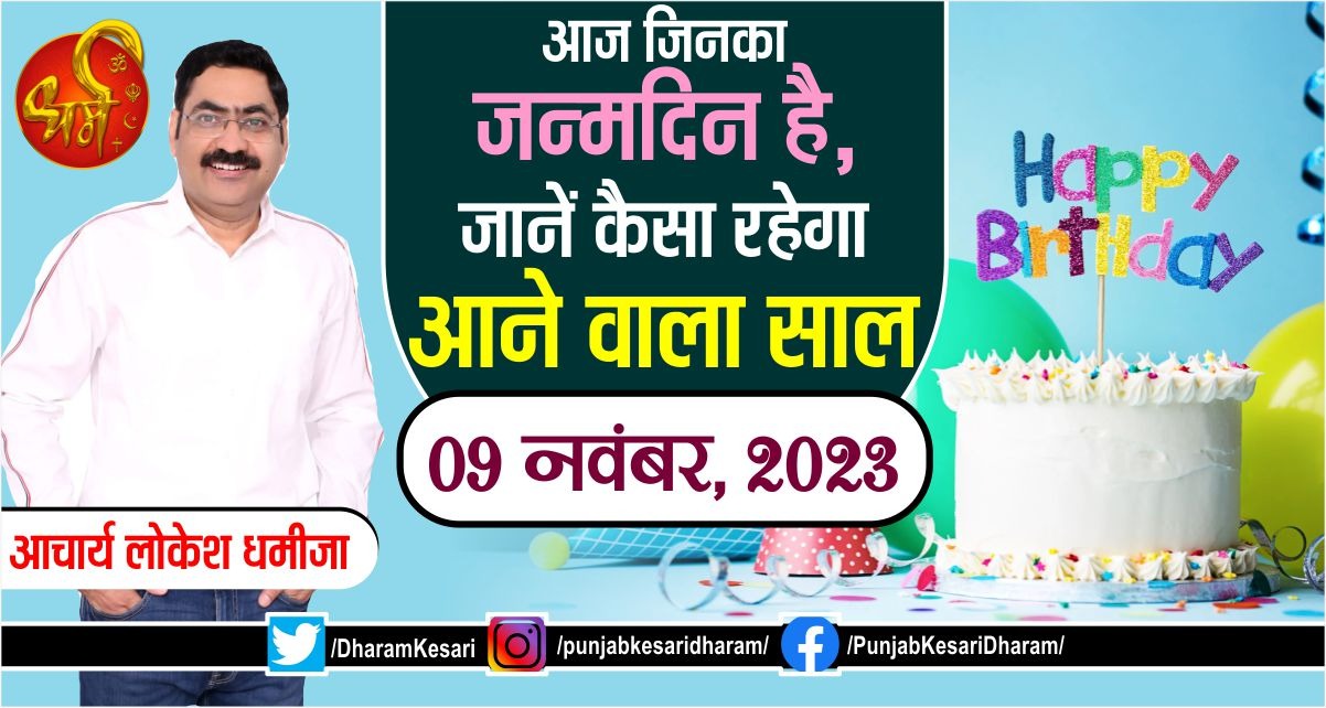 Today's Birthday Prediction: आज आपके जन्मदिन की आपको बहुत-बहुत शुभकामनाएं। 9 नवंबर में जन्में व्यक्तियों का मूलांक 9 होता है। जिन के स्वामी मंगल देव हैं। मूलांक 9 वाले जातक बहुत ही साहसी और निडर होते हैं। ये लोग हर साहसिक कार्य को करने के लिए तैयार रहते हैं। ये लोग किसी भी जोखिम भरे काम को करने से घबराते नहीं हैं। इनका रवैया काफी रौबदार होता है। इन लोगों का स्वभाव थोड़ा क्रोधी होता है। इन्हें हर छोटी-छोटी बात पर गुस्सा आ जाता है परंतु मूलांक 9 वाले जातक बहुत देर तक किसी से नाराज नहीं रह सकते। मूलांक 9 वाले जातक हमेशा दूसरों की मदद करने के लिए तैयार रहते हैं। इनके मन में दूसरे के लिए दया भावना होती है। इनका मन समाज सेवा के कार्यों में भी अधिक लगता है। अपने जीवन के किसी न किसी पड़ाव पर ये लोग एक समाजसेवी के रूप में कार्य करते हैं। मूलांक 9 वाले जातकों को पुलिस, आर्मी, डॉक्टर, सर्जन, समाजसेवी इत्यादि क्षेत्रों में सफल कार्य करते हुए देखा गया है। मूलांक 9 वाले जातकों का अपने परिवार में छोटे बहन-भाइयों के साथ अधिक स्नेह होता है। ये लोग हर परिस्थिति में उनका साथ देते हैं। मूलांक 9 वाले जातकों की शिक्षा प्रायः अच्छी रहती है। इन्हें हर विषय को सीखने में रुचि होती है।